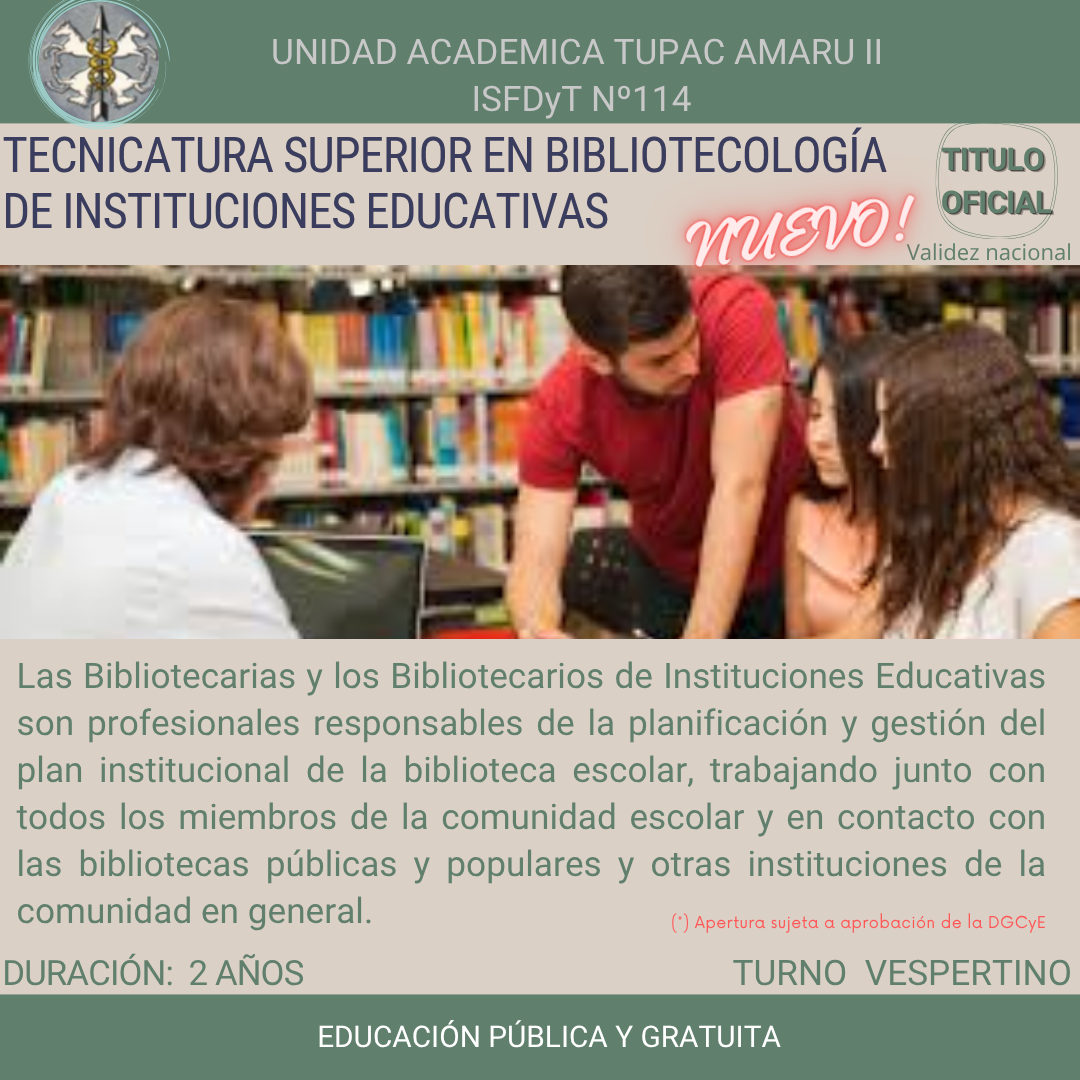 Tecnicatura Superior en Bibliotecología de Instituciones Educativas (BIE) – Pendiente de aprobación por la DGCyE